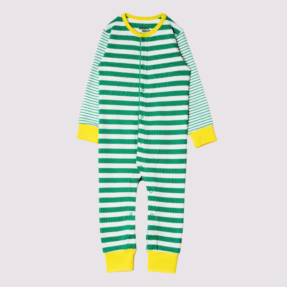 Long Sleeve Snap Romper - Blarney Green Stripes