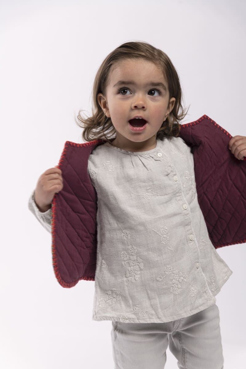 Our new quilted vest for little ones is made from the finest fabric scraps, reassembled in a patchwork design. Combining upcycling, style, and craftsmanship, this baby garment is fully recycled, colorful and vibrant, soft and comfortable, and both warm and lightweight. It’s perfect for spring and summer, as well as mild autumn and winter days.