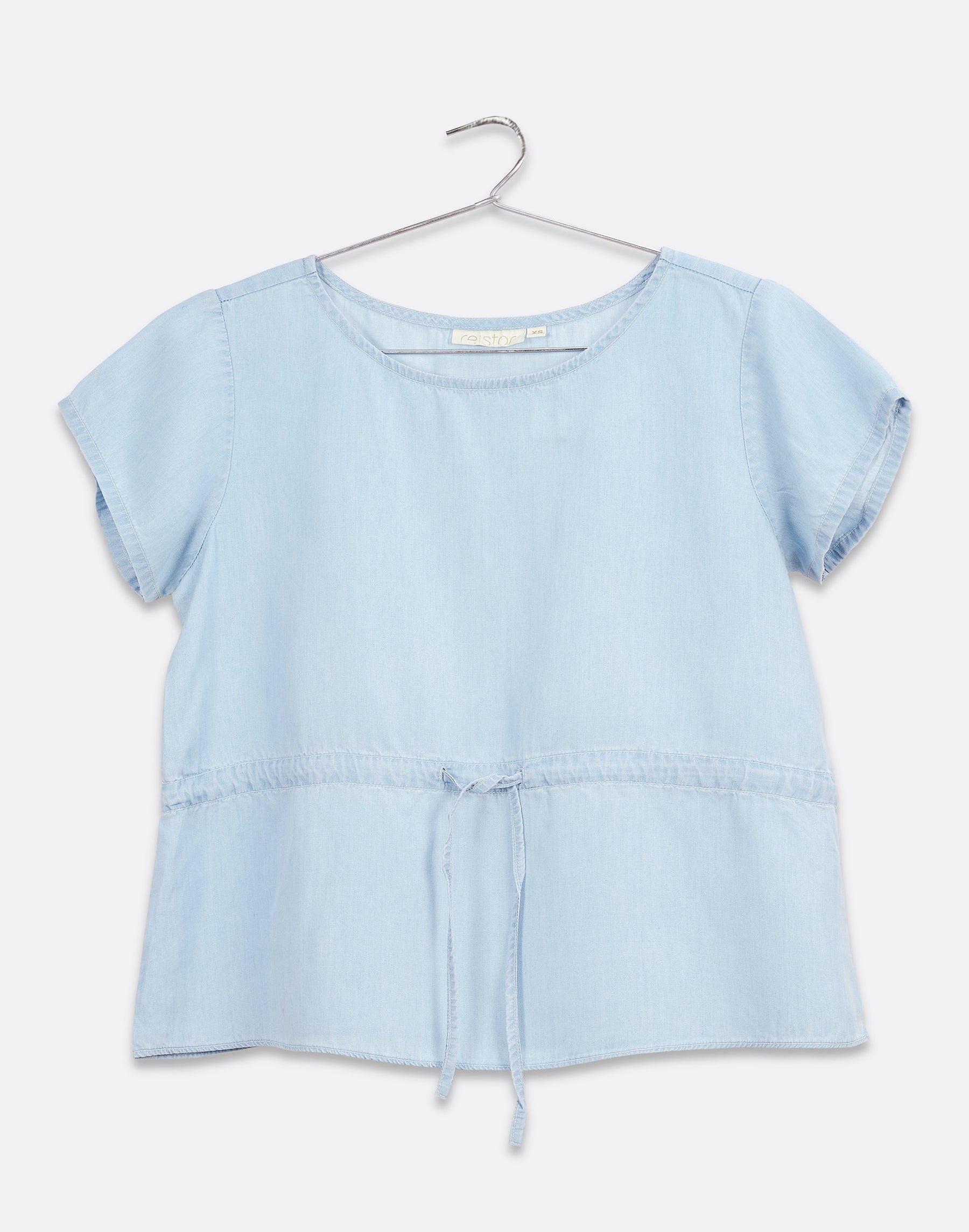 A Sweet Escape Tencel, Drawstring at Waist Perfect to pair with shorts, jeans, or even joggers, this shirt can be worn cinched at the waist or loose and flowy. Made from 100% Tencel.