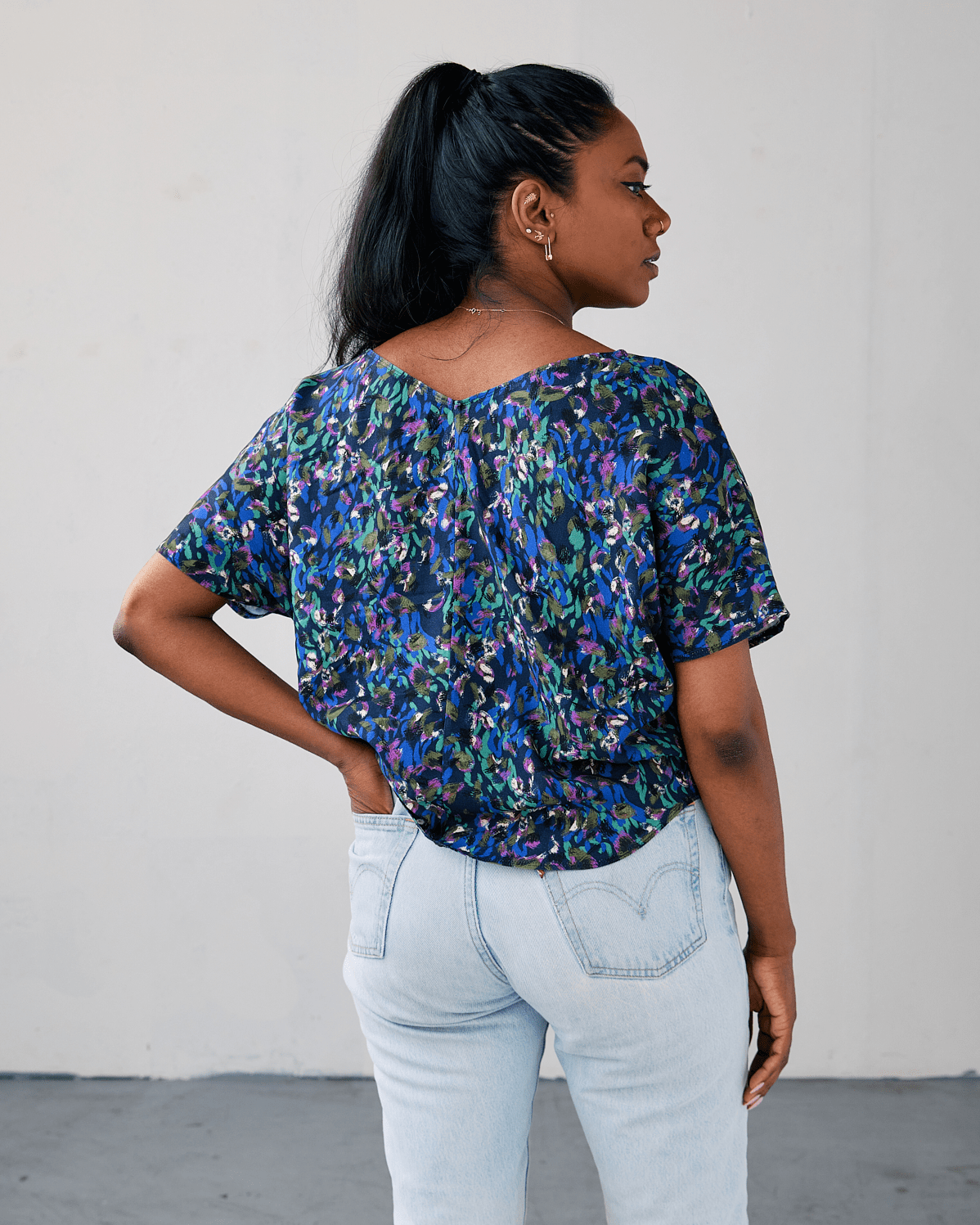 A timeless staple for any wardrobe, this v-neck top is effortless and cool with a soft silhouette. The hemline hits slightly higher on the sides than the front and back so that you can perfect the French tuck. P.S. there's a v-shaped dip in the back, as well.