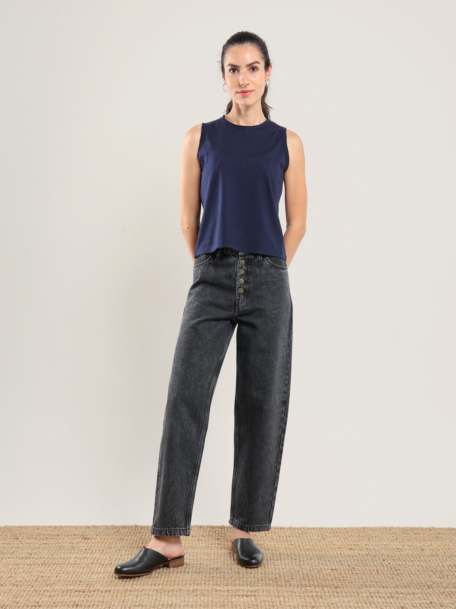 Anonymous I got this tank for work in the black and wear it all the time. It has a loose but flattering fit, feels soft and breathable, and looks great with any pants I pair it with. It is hands down my favorite!
