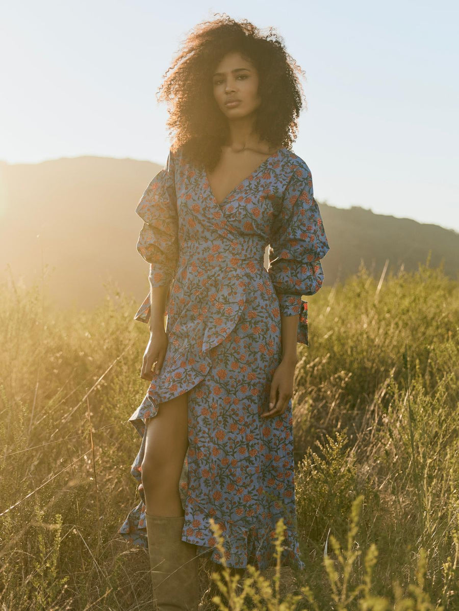 Prussian Blue/Placed Floral Embroidery