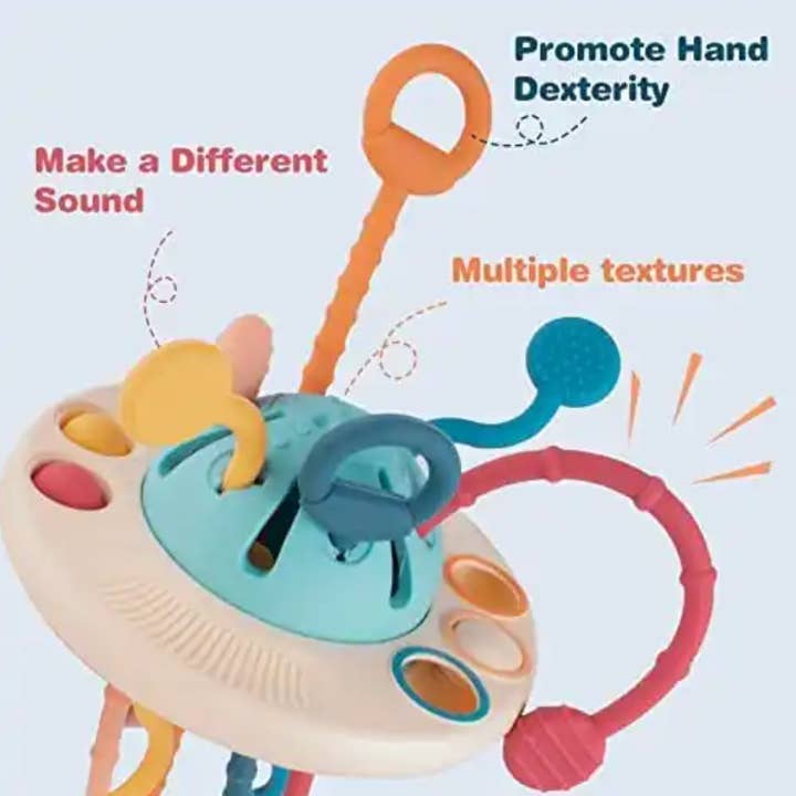 The UFO Pull String Activity is an engaging and interactive toy designed to captivate young minds through creative play. Shaped like a UFO, this toy features a pull-string mechanism that activates various sensory elements. As children pull the string, the UFO may emit soft melodies, display colorful lights, or engage in a spinning motion, offering a multi-sensory experience. The pull-string activity not only enhances fine motor skills but also encourages cause-and-effect understanding as kids discover the delightful reactions triggered by their actions. With its whimsical design and attention to sensory stimulation, the UFO Pull String Activity provides a fun and entertaining way for children to explore the principles of movement and sound in a playful and imaginative setting.