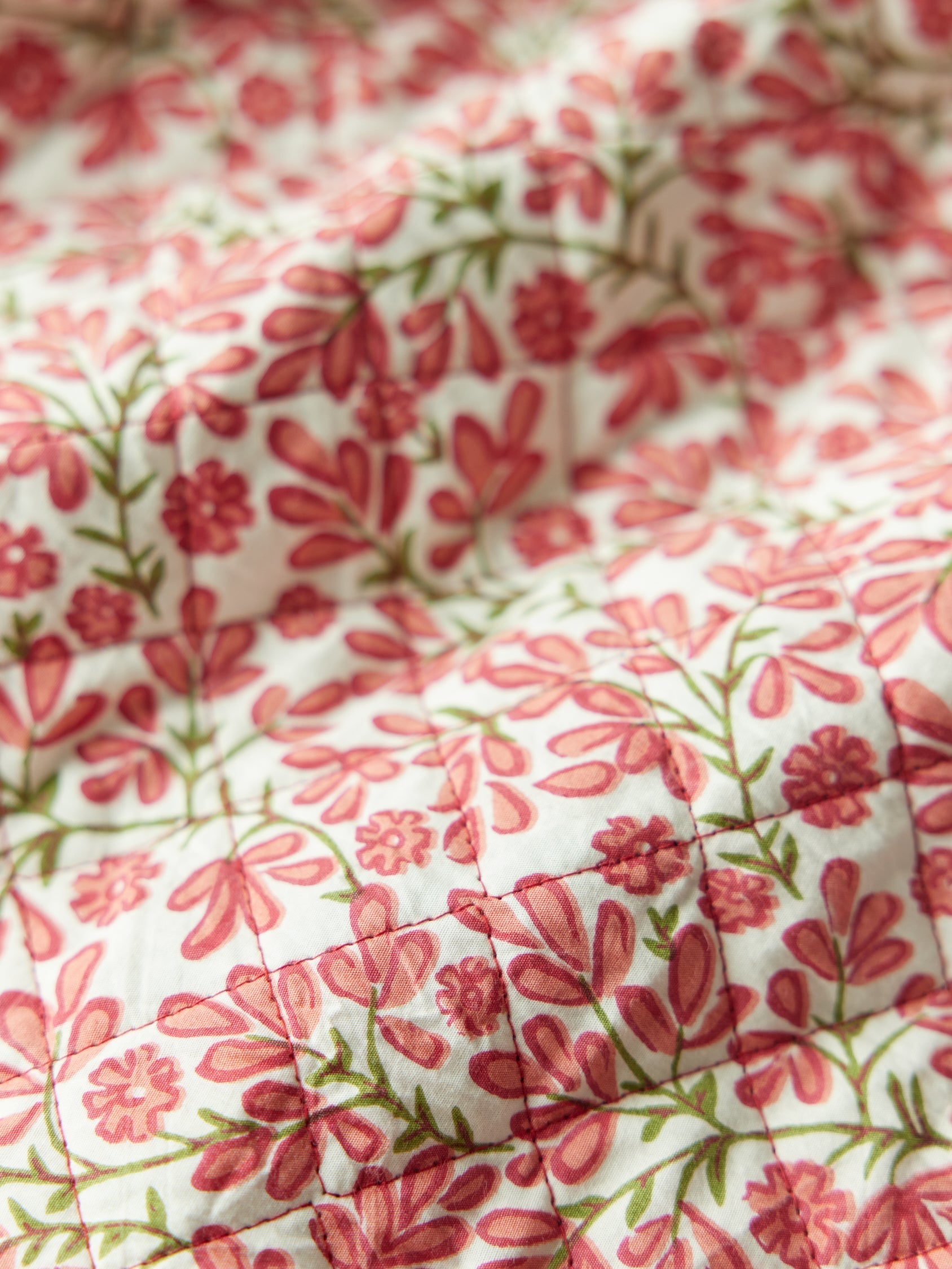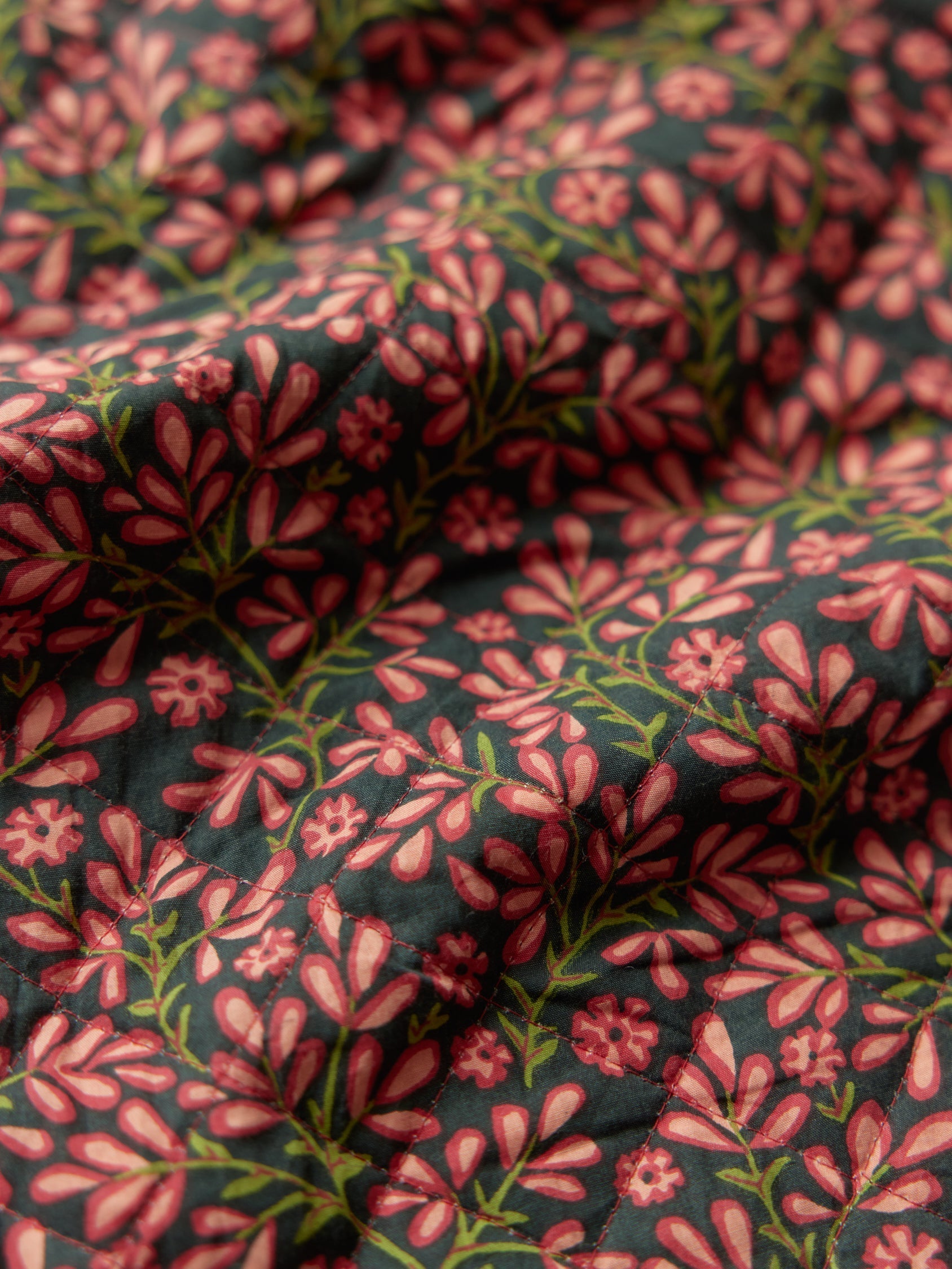 • This is a quilted cotton. It is a double layer printed textile that has been created through a block printing process. This is a technique done by hand, in special workshops, using ancient methods. Because of the art of hand printing, subtle print and dye variations will occur on this fabric. These are a part of the beauty and character of garment and make it all the more special