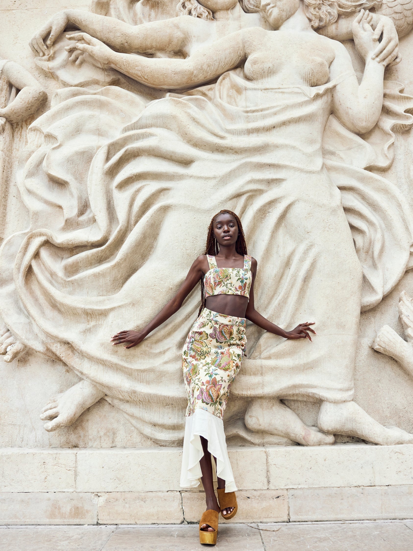 Meet Christy- the bra-style top ready to hit the town. Square neckline with high adjustability from invisible side zipper, smocked back, and adjustable corset back ties to ensure you feel secure and ready to dance the night away.