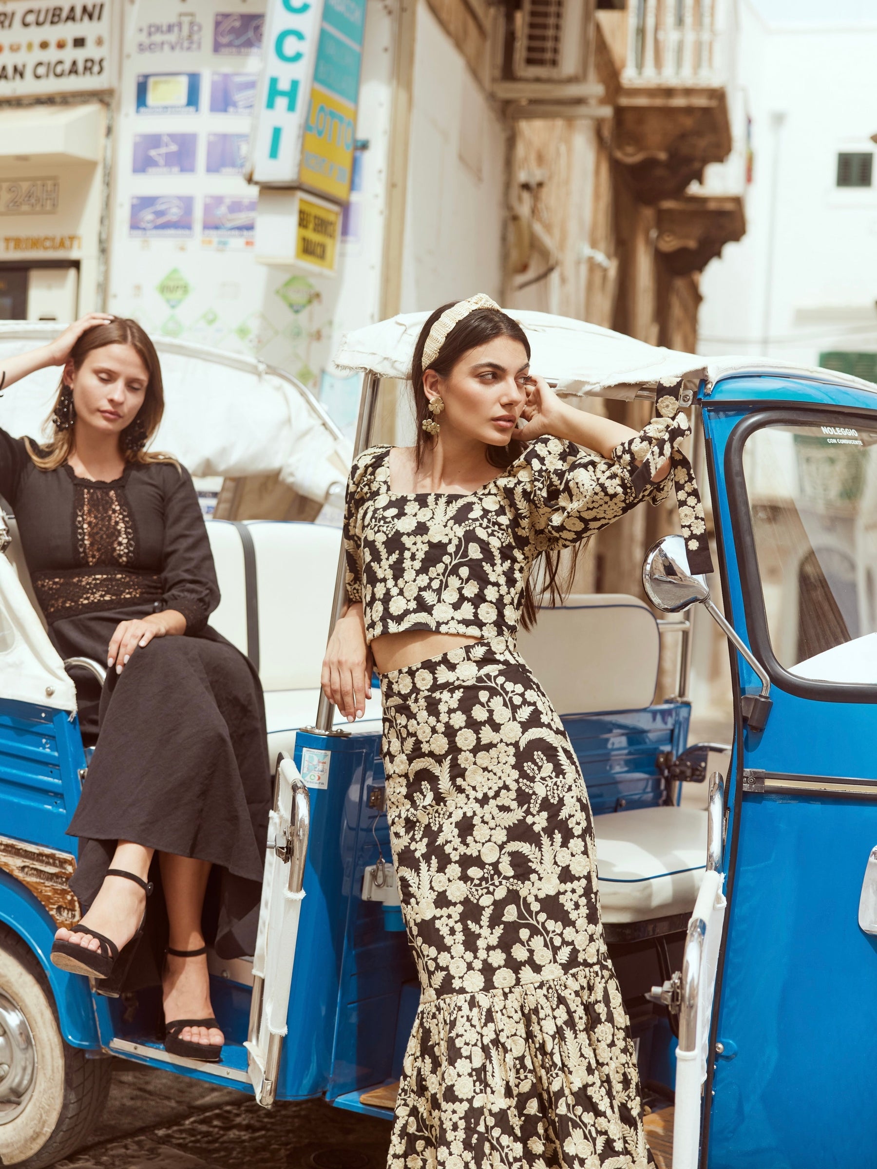 The Doris is an exquisite top all about the intricate embroidery. This slightly cropped blouse has dramatic puff sleeves that contrast beautifully with the more fitted bodice. This lovely blouse features a lace-up back as an added detail.