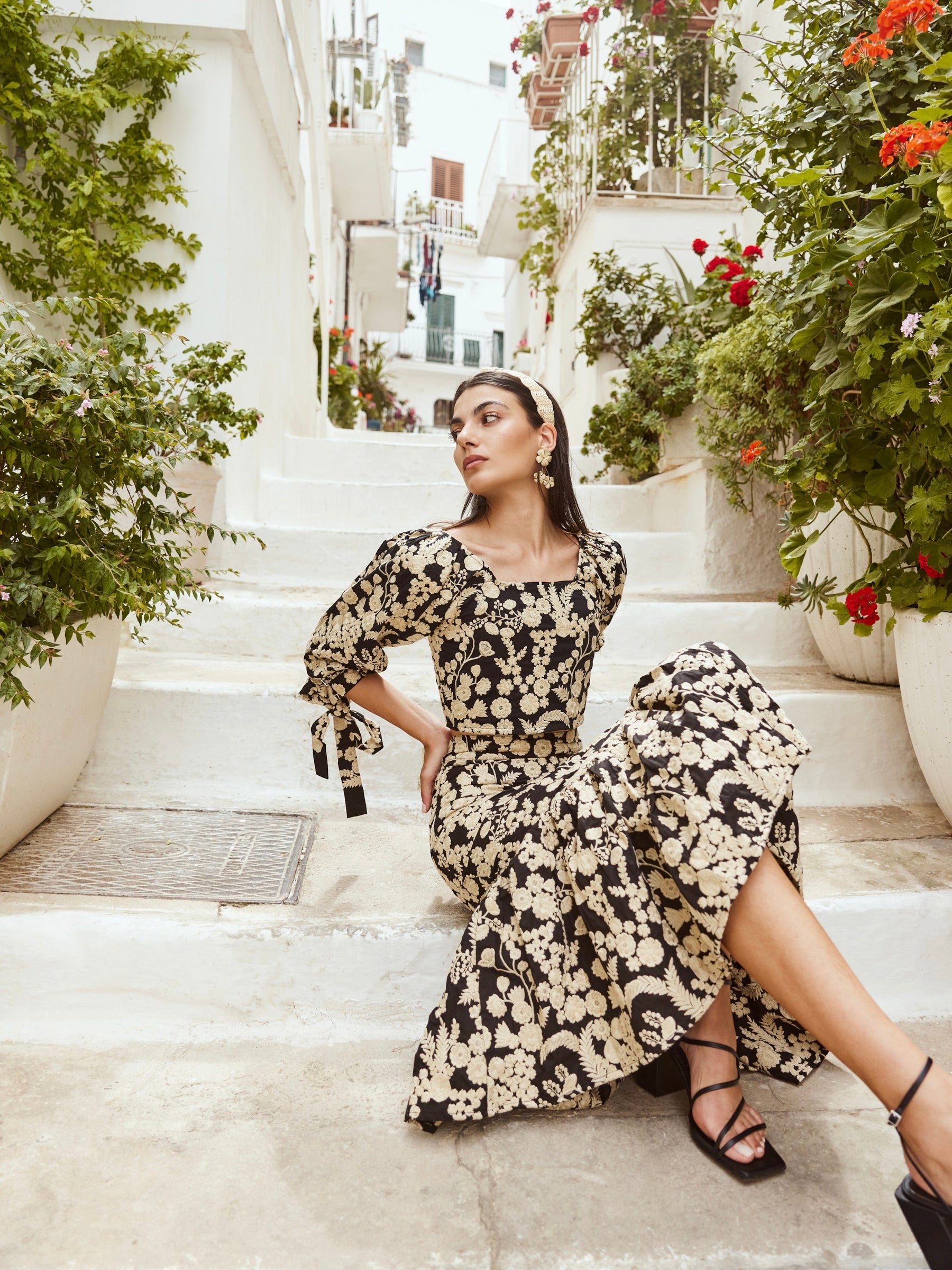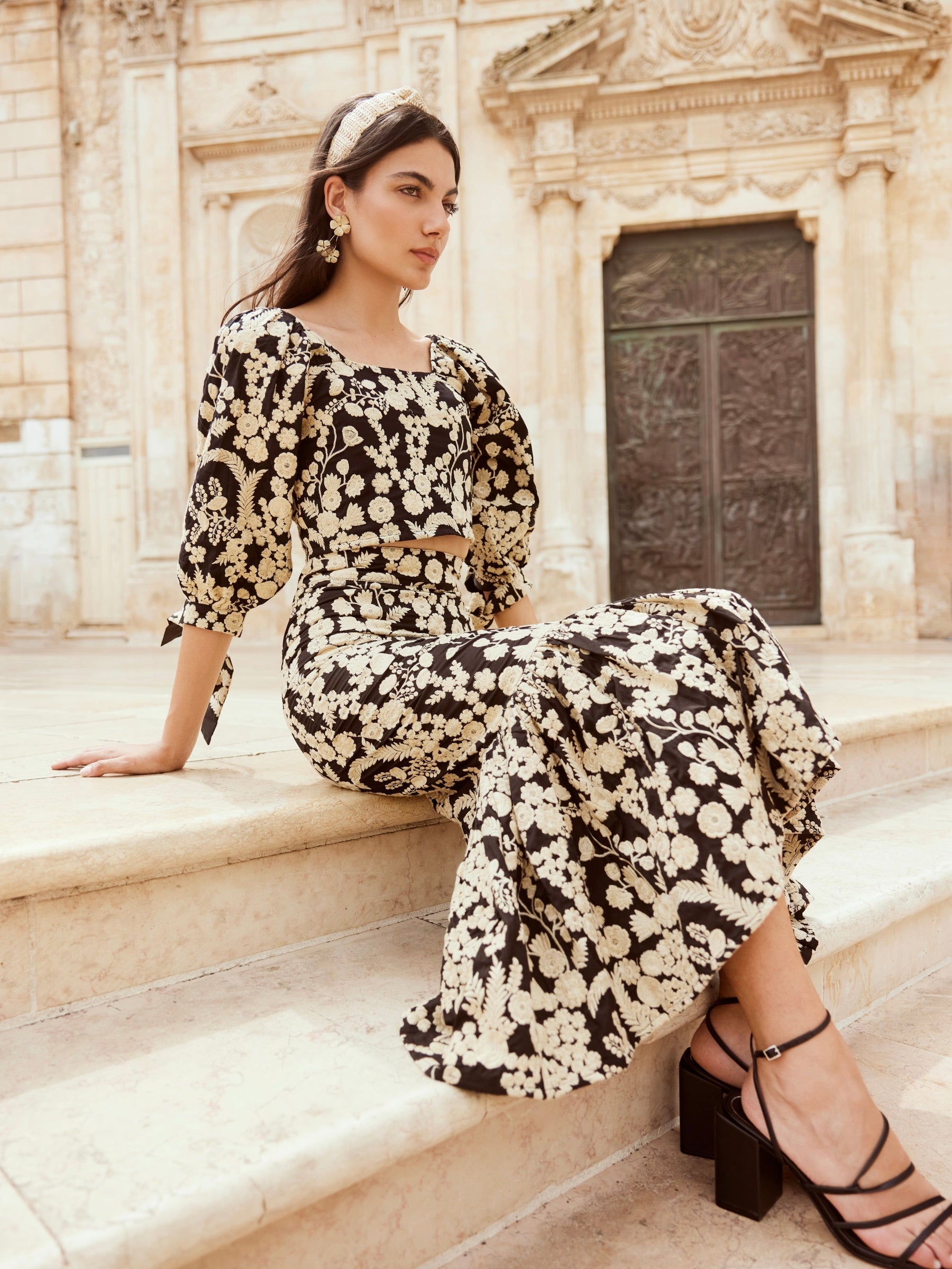 Doris Embroidered Puff Sleeve Top - Midnight/Cream Floral Embroidery