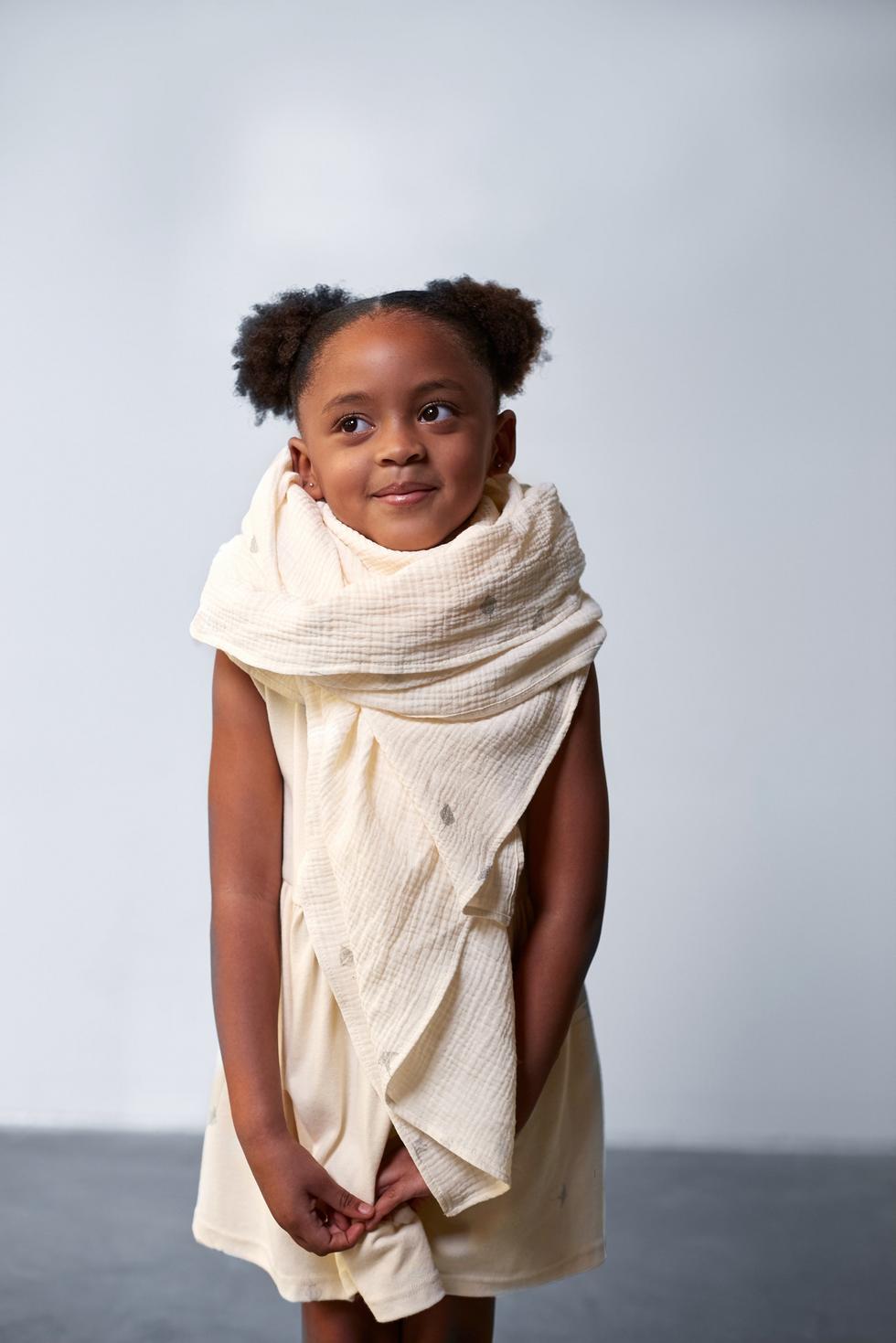 This simple yet beautiful dress is featuring a round neck with ties at the back and a super soft, brushed jersey fabric. Fit and flare silhouette with generously shirred skirt is perfect for a special event or family pictures but also comfortable enough for everyday adventures. Tiny whale sharks all-over print is our fave this season.