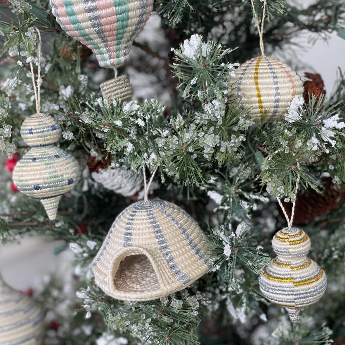 Our exceptional handwoven ornaments are designed to elevate any occasion. These one-of-a-kind treasures effortlessly transition from adorning a tree to embellishing a gift, serving as a captivating napkin ring, or becoming a charm for your favorite handbag. The versatility of these ornaments knows no bounds, providing endless possibilities for creative expression. With a wide array of styles to choose from, you'll easily find the perfect gift, destined to delight anyone in your life. Embrace the magic of our unique handwoven ornaments and make every moment a truly memorable one.