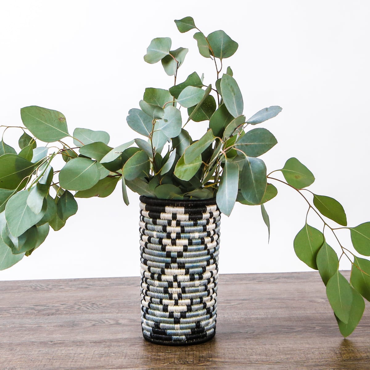 This stunning home accessory is a true focal point that complements any space with its captivating presence. Make a statement by placing it on a shelf or coffee table. With a glass insert included, you have the option to fill it with fresh or faux flowers, allowing the beautifully dyed raffia to take center stage. Need some additional inspiration? Transform this vase into a charming wine holder for your next dinner party or utilize it as a stylish organizer for your wooden spoons on the countertop. The versatility of this vase knows no bounds, making it a truly remarkable addition to your home.