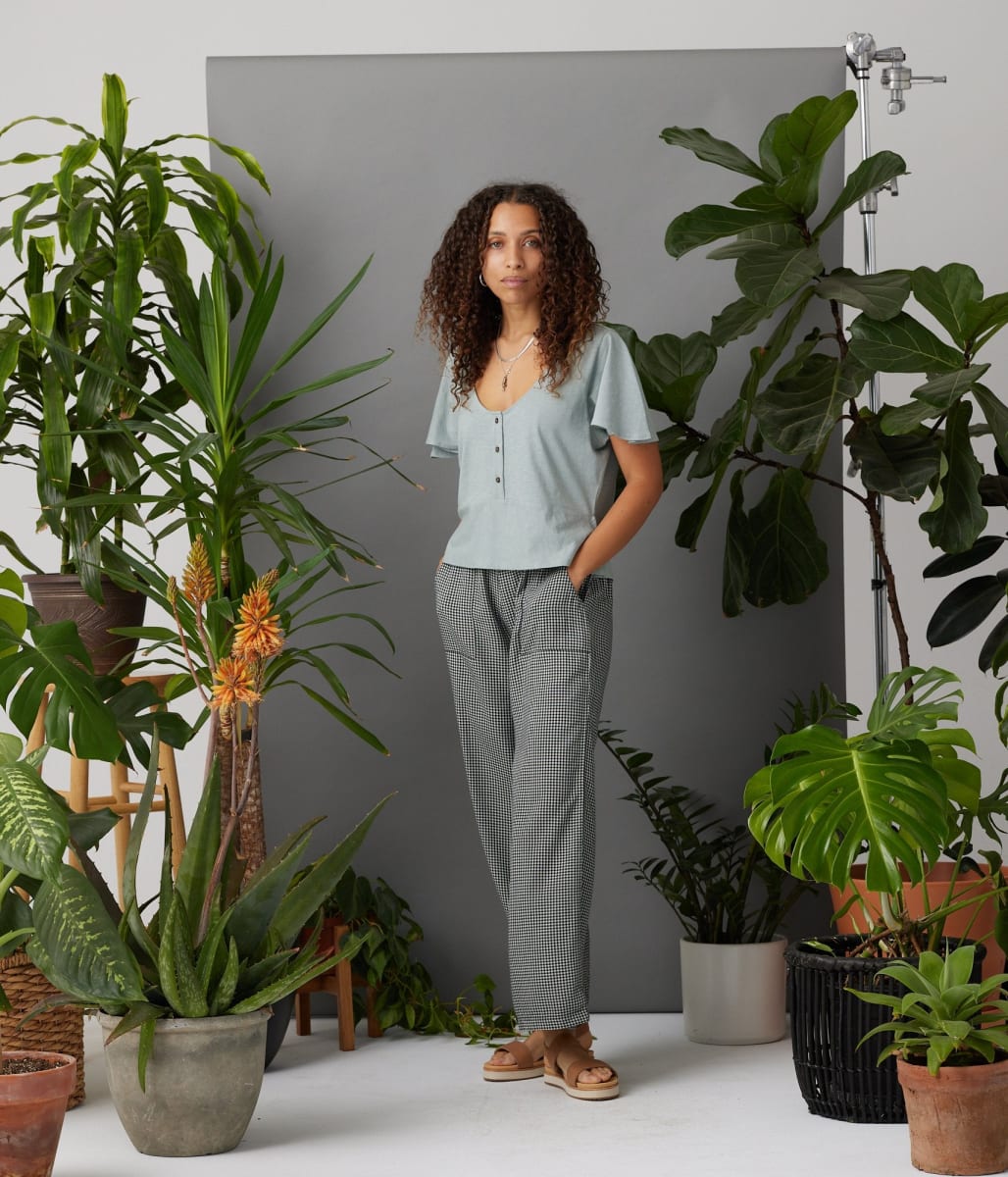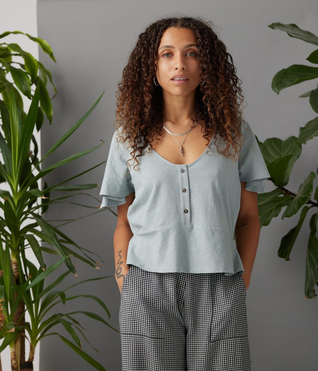 With a slight peplum, the Leonora top adds flare to any wardrobe.