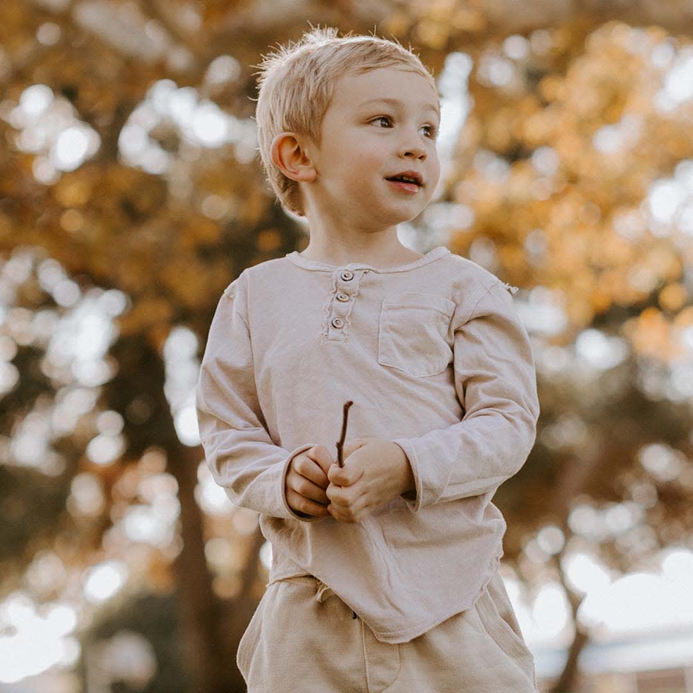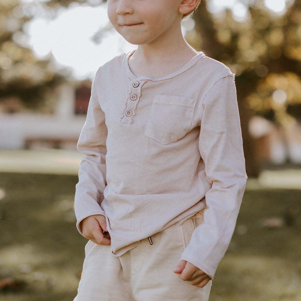 The Buzz Henley is super-soft and cozy, it's sure to be a favorite. This everyday staple is perfect for your little ones to run around in.