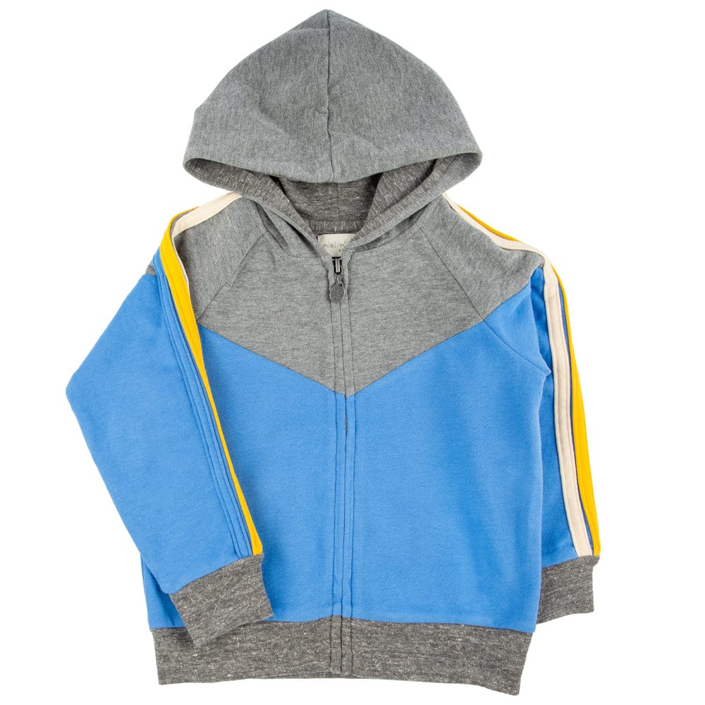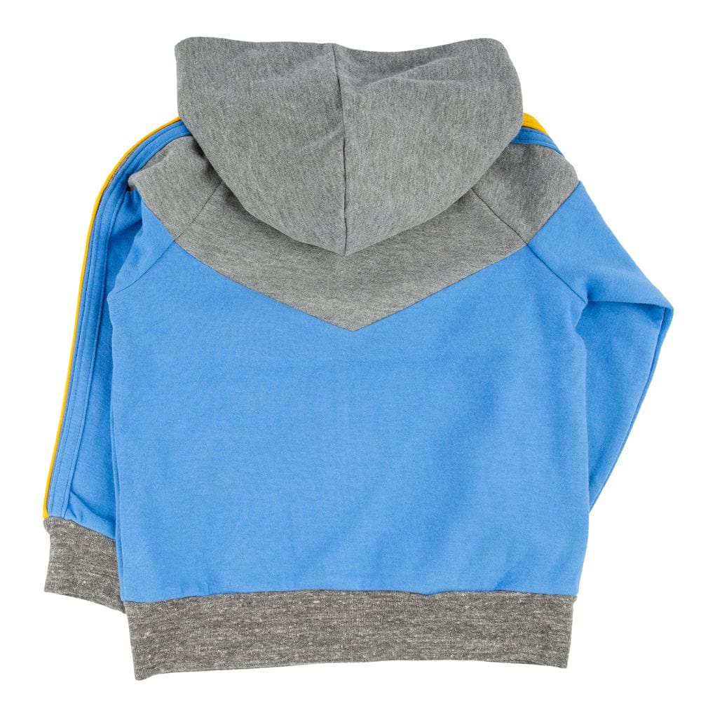 Layer up your little warrior with the stylish Warriors Collection Zip-Up Hoodie! Crafted from a soft blend of blue and heather grey brushed terry, this hoodie combines comfort and a sporty aesthetic. The full zip design makes it easy to put on and take off, while the ribbed cuffs and hem ensure a snug fit. Featuring a bold contrast color scheme and a classic silhouette, this hoodie is perfect for keeping him warm during chilly days or for adding a stylish layer to any outfit.