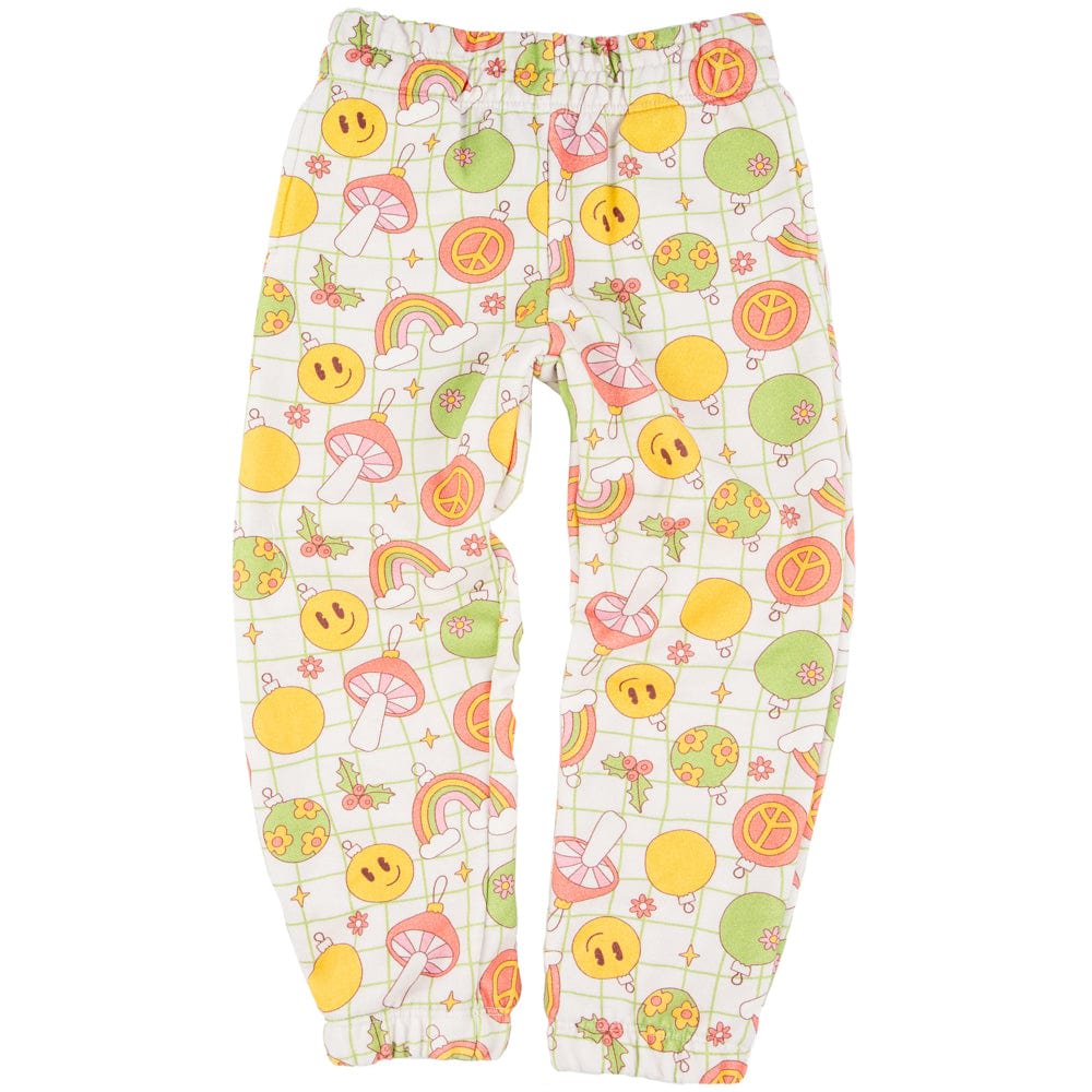 Get your little ones ready for the festive season with our Wyatt lounge joggers, crafted from super soft brushed French Terry. Featuring a playful Holidaze groovy Christmas ornament print, these joggers are perfect for lounging at home or joining in on holiday festivities. The relaxed fit and elastic waistband ensure comfort and flexibility, allowing for easy movement during playtime or cozy evenings.