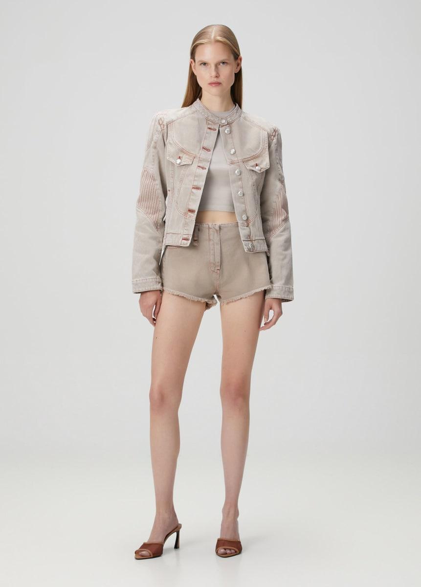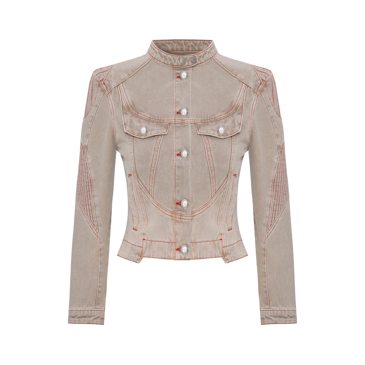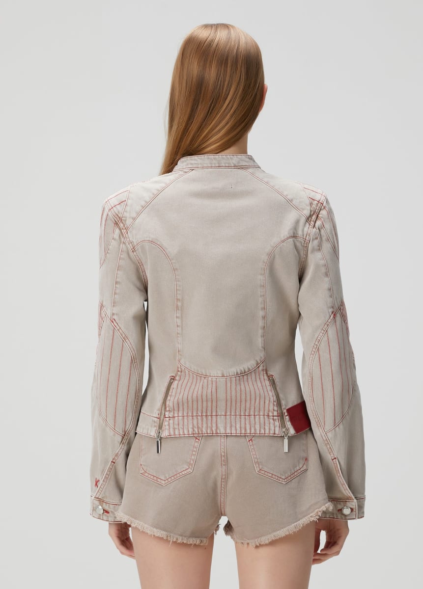 Pure Cotton Faded Motorcycle Denim Jacket - Moon Rock