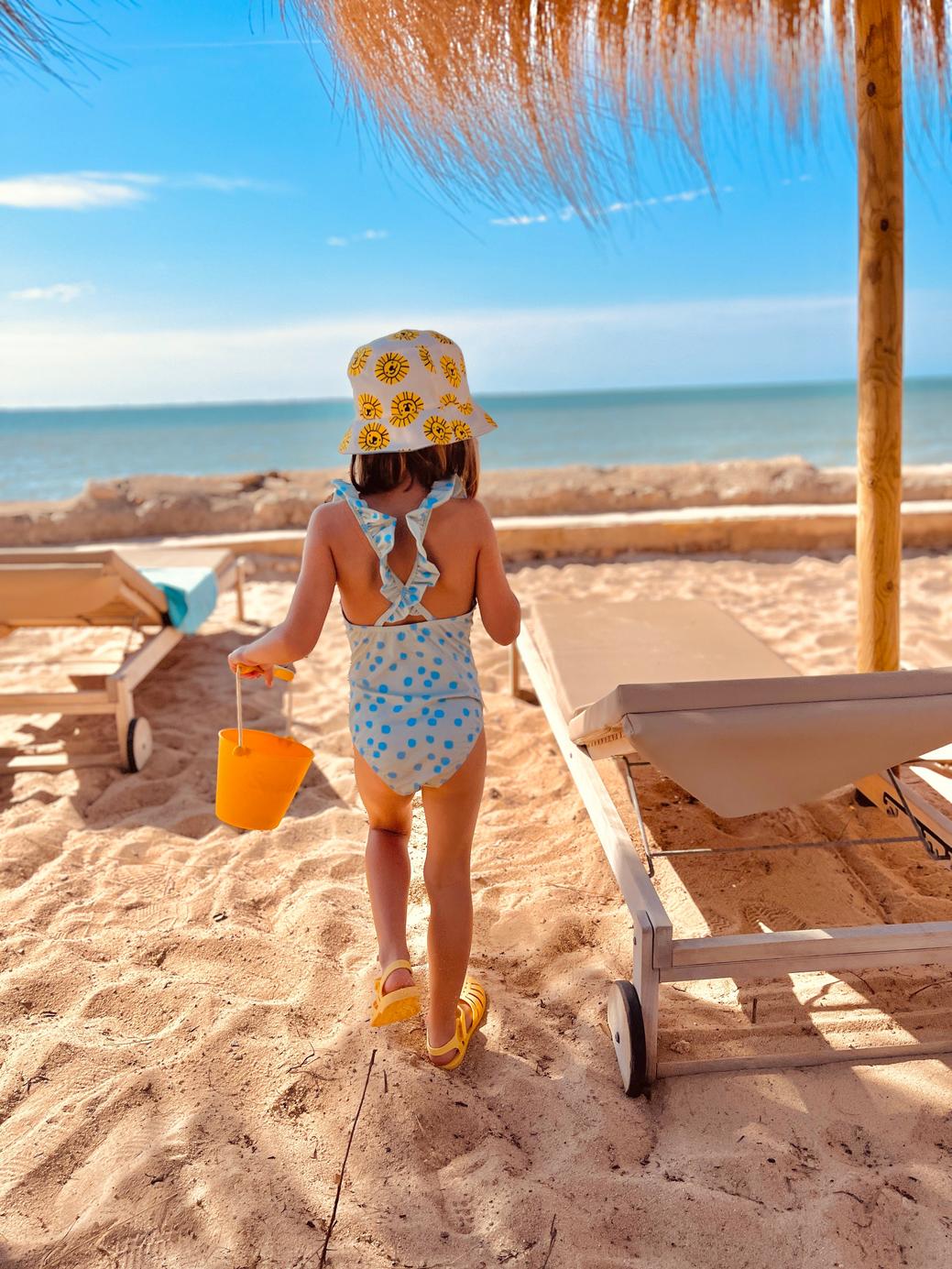 Recycled Polyester Sea Foam Dotted Ruffle Kid Swimsuit - Sea Foam/della Blue