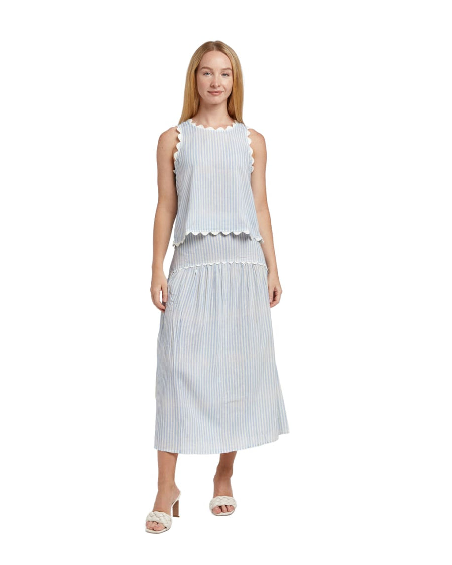 Breezy, feminine, and effortlessly flattering—the Everly Stripe Puff Sleeve Dress is your warm-weather go-to. Designed in a crisp cotton stripe, this dress features a softly structured V-neckline, gathered waist, and tiered skirt for a silhouette that moves with ease. Puff sleeves add a playful finish, making it perfect for weekend outings, picnics, or a casual brunch with friends.