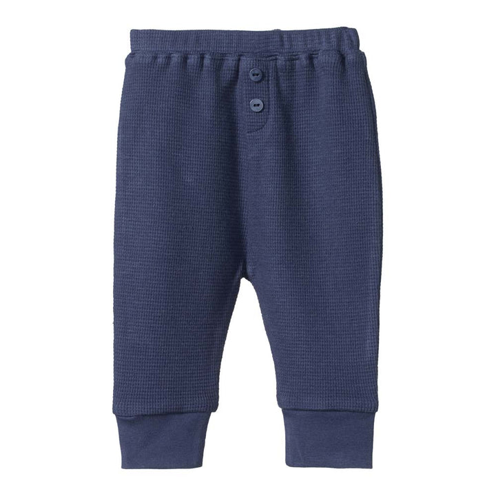Made from Nature Baby's softly textured waffle knit, these pants are breathable and retain warmth to keep baby cozy and comfortable on cooler days. With a gentle elastic waist, corozo nut buttons, and ribbed cuffs at the ankles for a cosy fit.