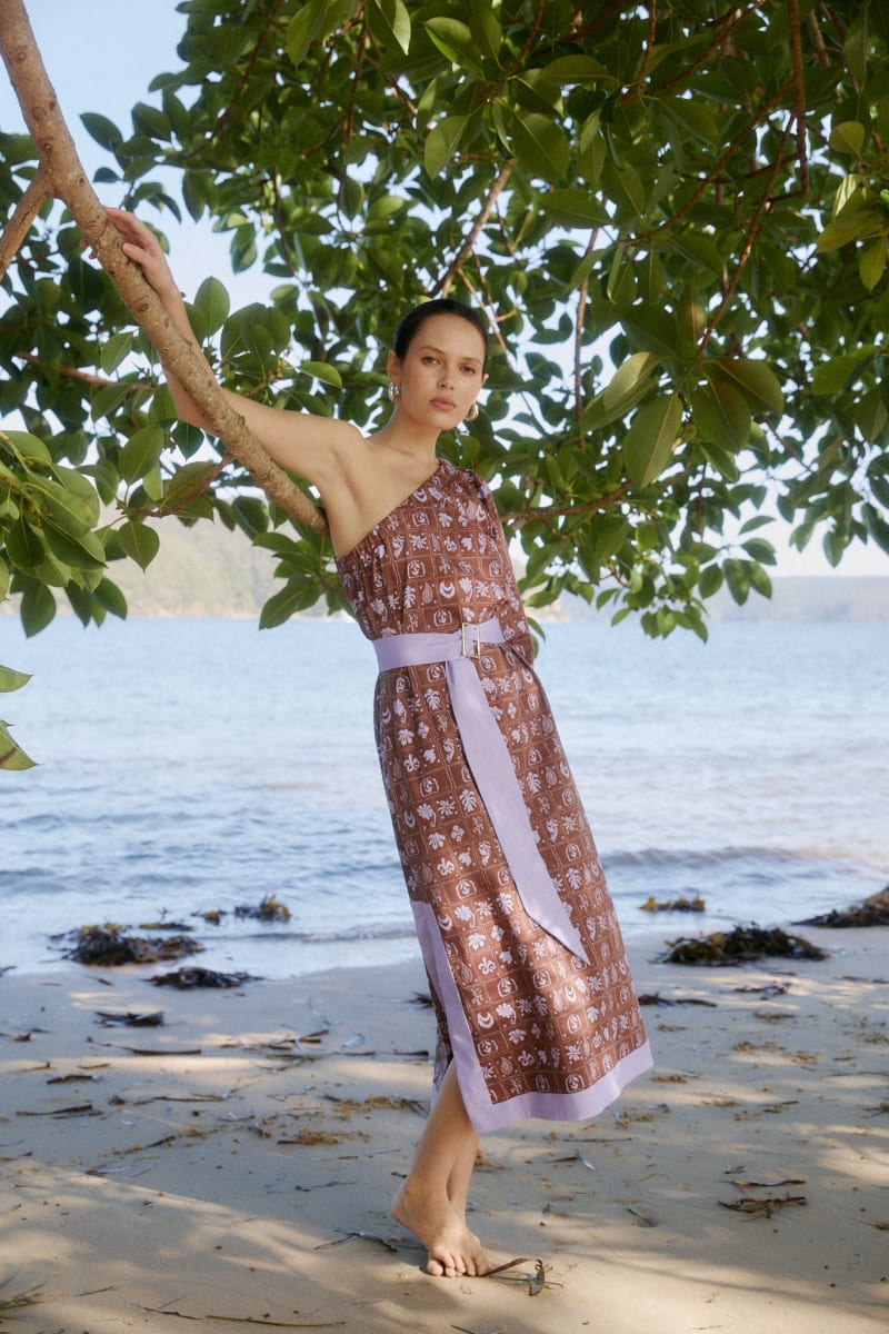 An ode to golden light and sunlit ease, the Pepper One-Shoulder Dress is where artistry meets wearability. Crafted from breathable, ultra-soft cotton, this effortlessly elegant silhouette is adorned with Zandra Stone’s exclusive hand-painted in-house print.